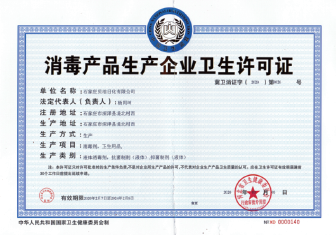 消毒產品生產企業衛生許可證